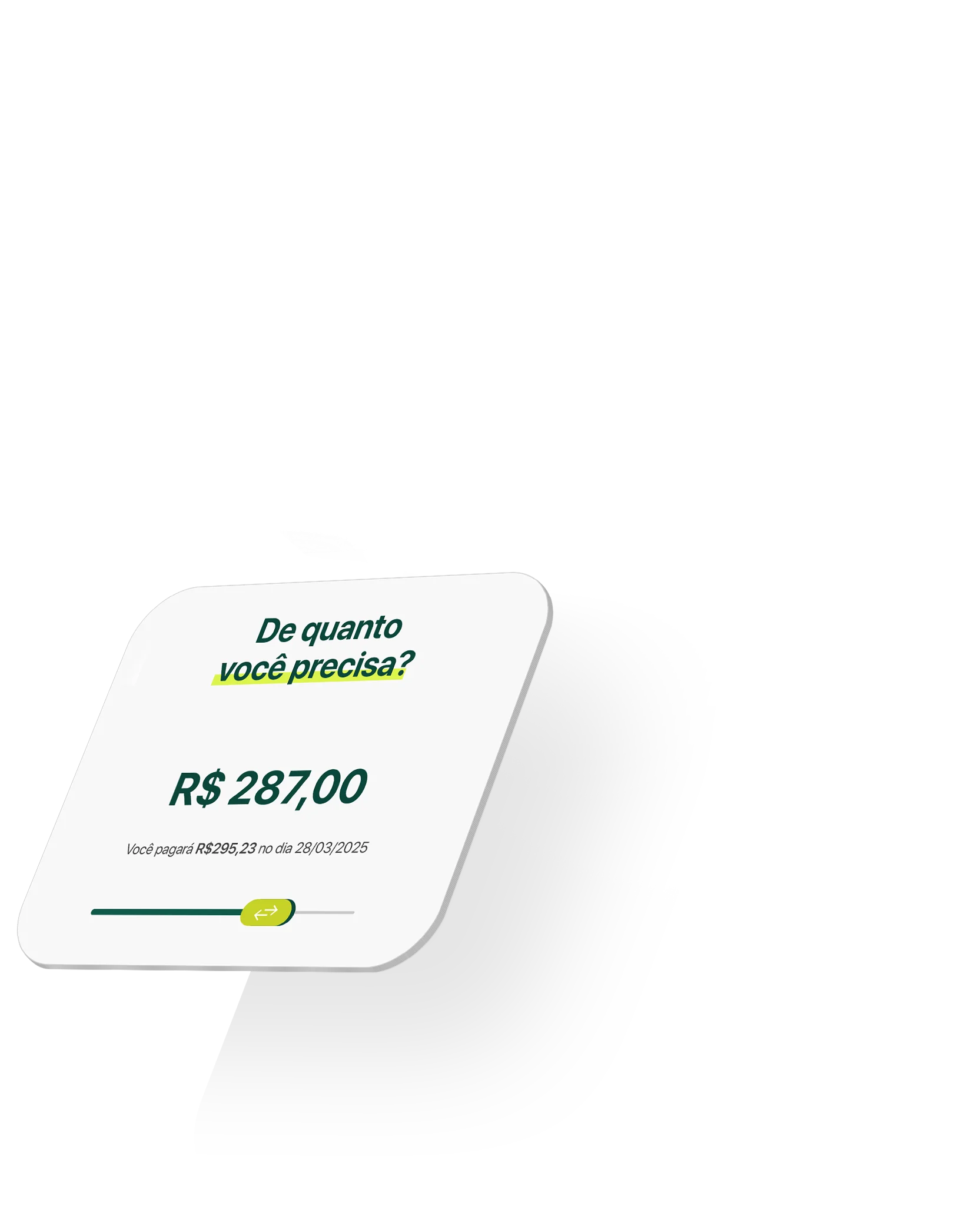 Use seu crédito consignado a qualquer momento para cobrir transferências urgentes, pagar boletos ou acertar aquele imprevisto que não pode esperar.